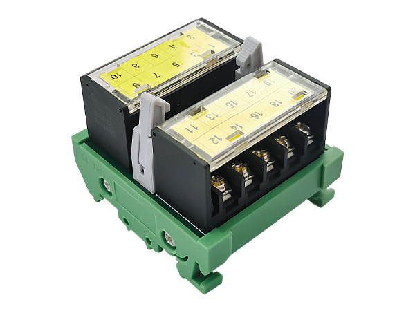④ 柵欄式端子輸出 ⑤4路繼電器模組,體積減小到最小⑥ 采用LED動作顯示,各輸入輸出端狀態(tài) 一目了然
