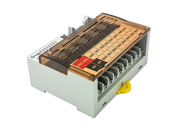③ 固定外殼設(shè)計④ 柵欄式端子輸出⑤ 8路繼電器模組,體積減小到最?、?采用LED動作顯示,各輸入輸出端狀態(tài) 一目了然⑦ PCB和零部件不外露,防止觸點和錯誤動作⑧ 阻燃材料,操作和維修方便,可快速安裝于DIN導(dǎo)軌" />